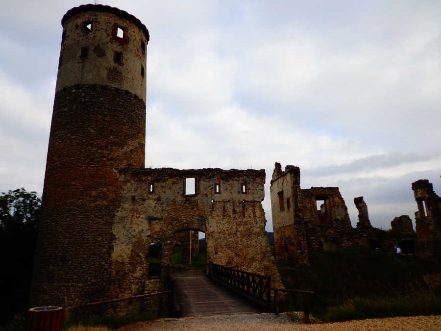 Zřícenina zámku Zvířetice:Tatínek rád řídí,maminka fotí, Pavlík to je velký kluk, Lukášek si cestou schrup!