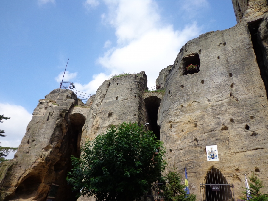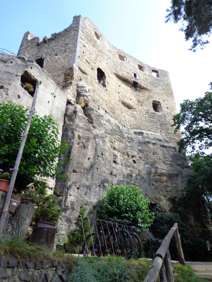 Zřícenina skalního hradu Valečov:Tatínek rád řídí,maminka fotí, Pavlík to je velký kluk, Lukášek si cestou schrup!