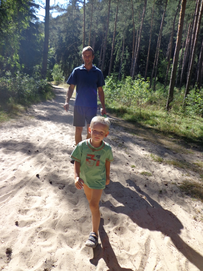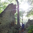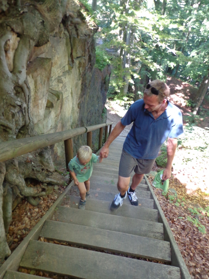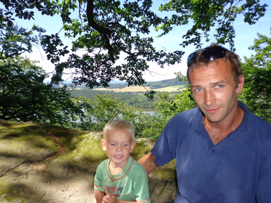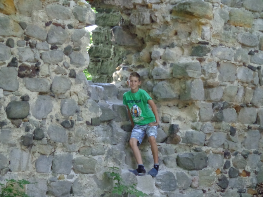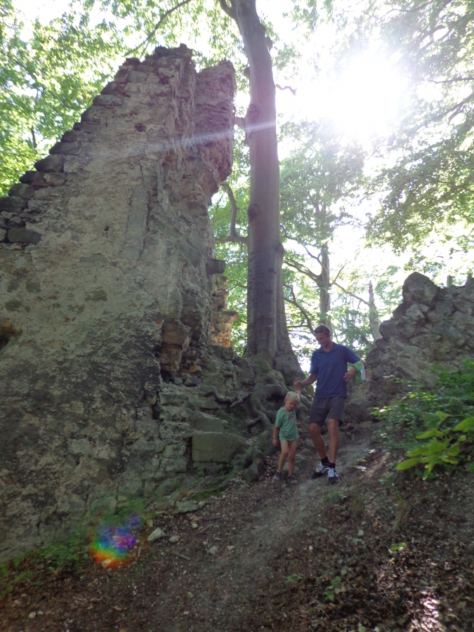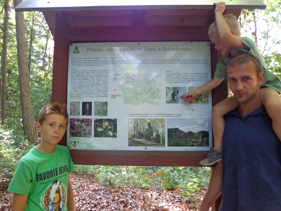 Hrad (Zřícenina) Děvín:Tatínek rád řídí,maminka fotí, Pavlík to je velký kluk, Lukášek si cestou schrup!