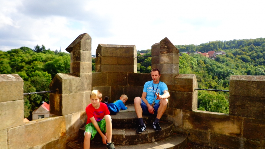 Hrad Křivoklát:Tatínek rád řídí,maminka fotí, Pavlík to je velký kluk, Lukášek si cestou schrup!