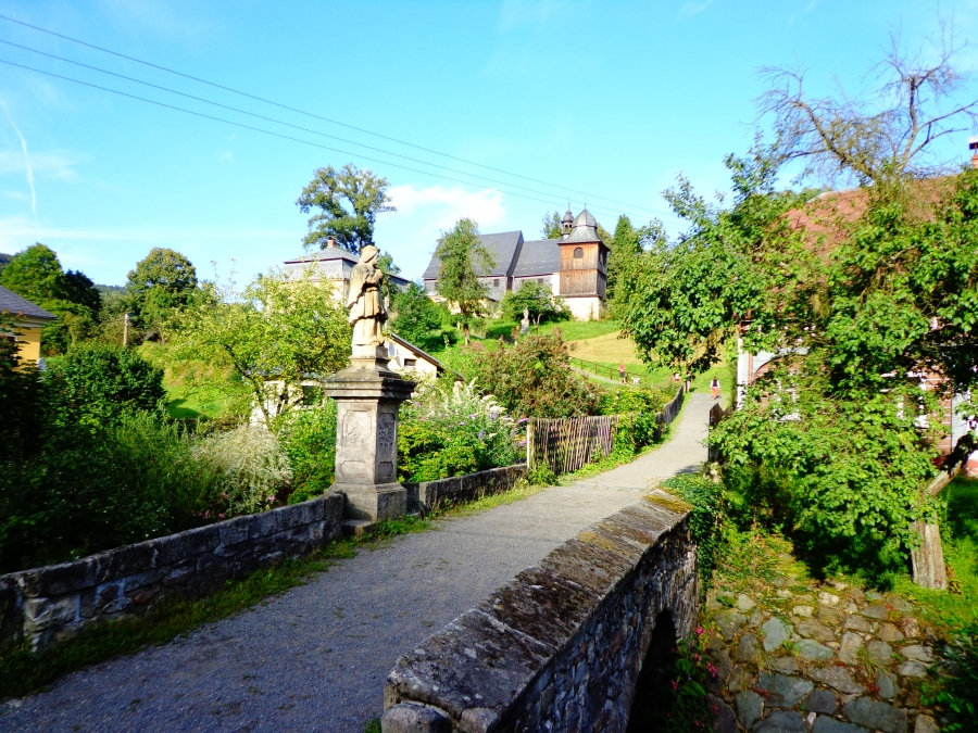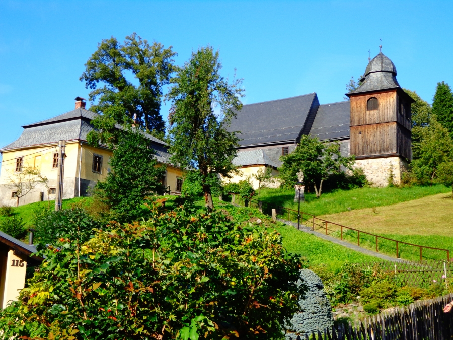 Dřevěný raně barokní kostel sv. Kryštofa z let 1683-1684, u něj rovněž dřevěná zvonice z r. 1754. Kaplička sv. Kryštofa, patrona obce, v sedle pod vrchem Malý Vápenný.