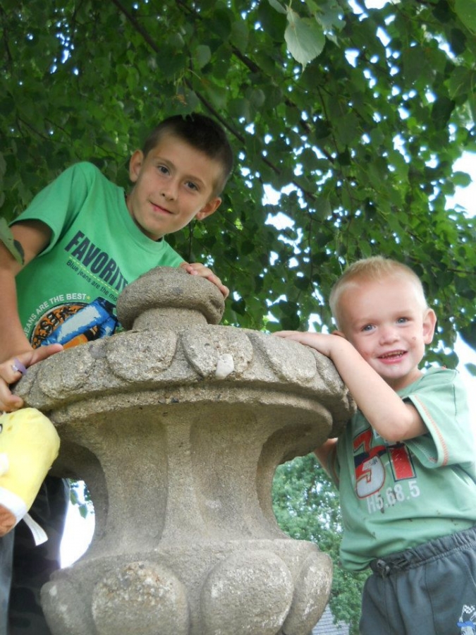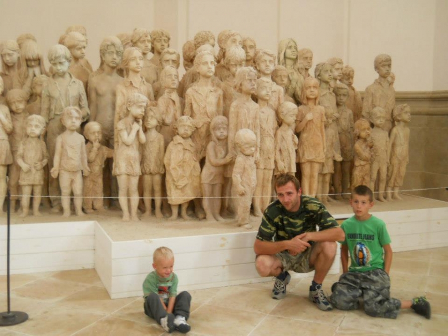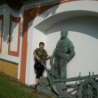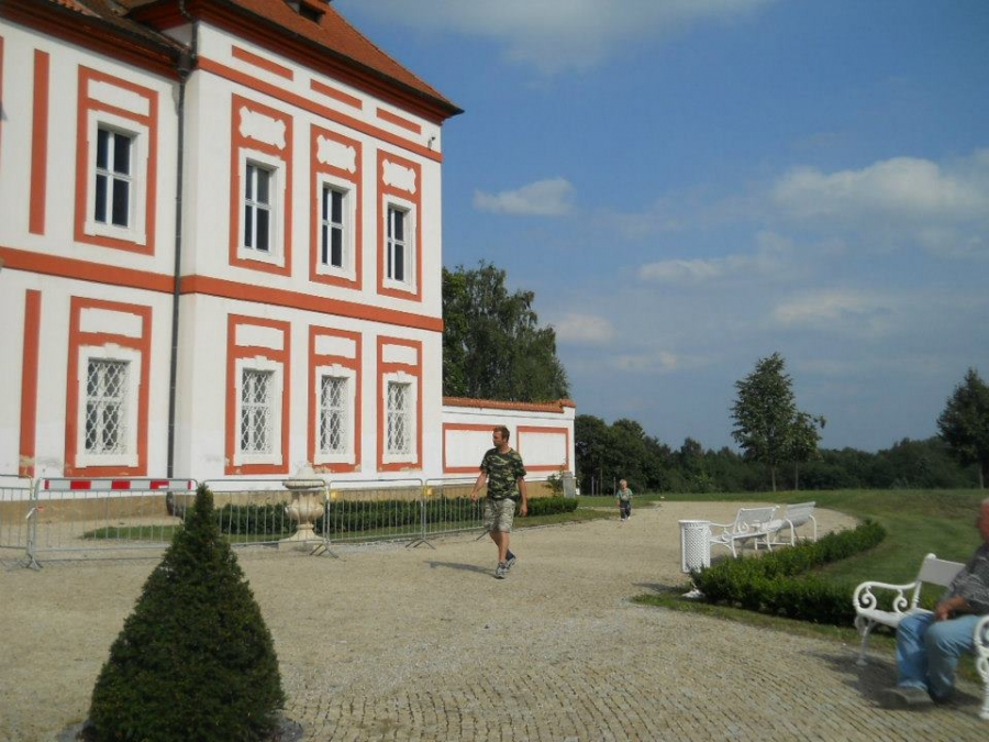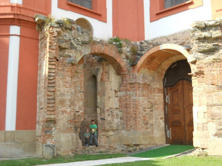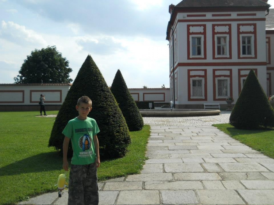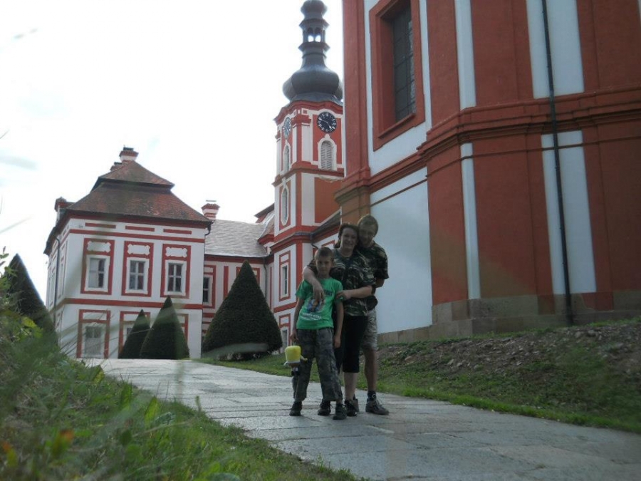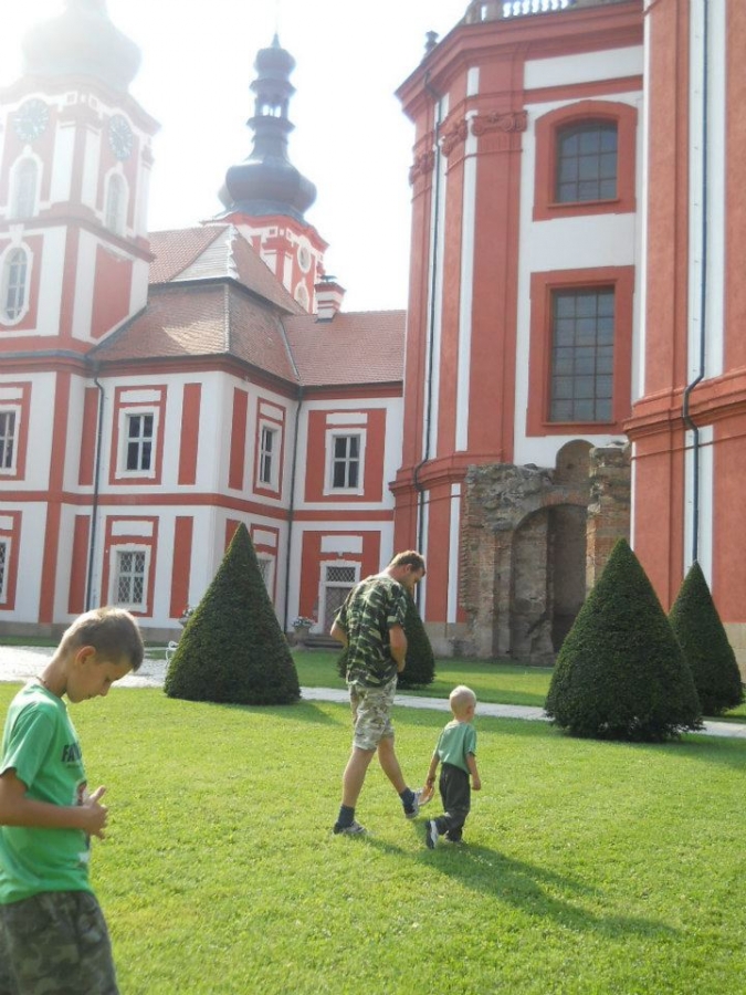 Klášter muzeum Mariánský Týnec u Plzně:Tatínek rád řídí,maminka fotí, Pavlík to je velký kluk, Lukášek si cestou schrup!