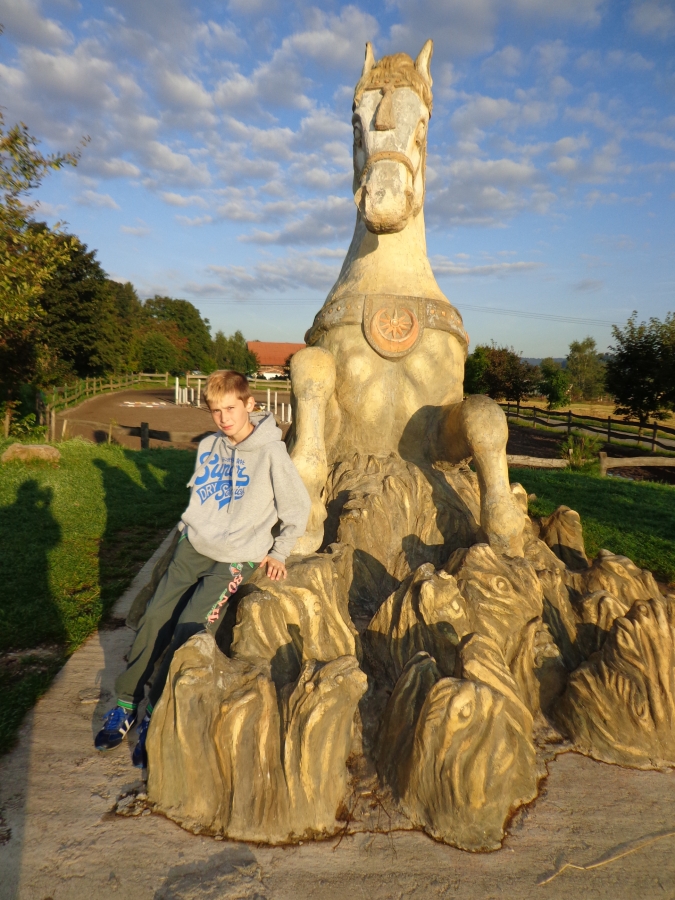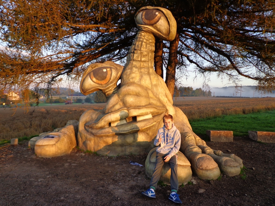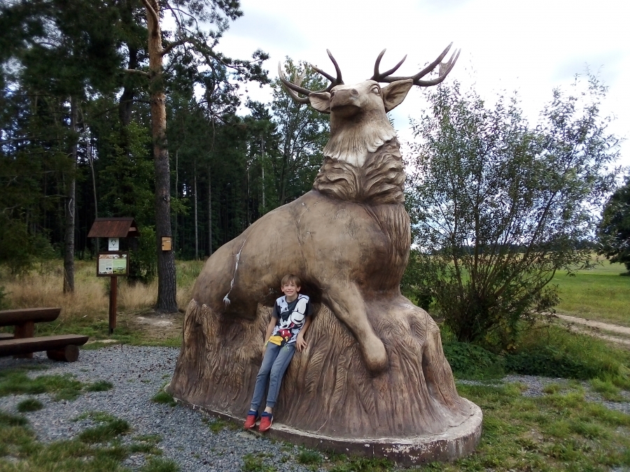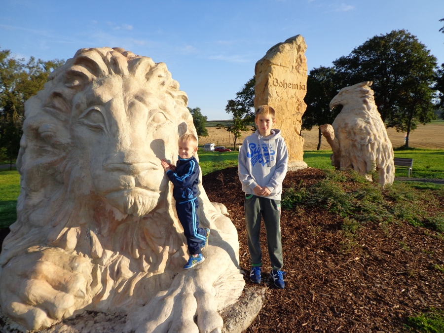 Naše toulky a hledání soch umělc - Michal Olšiak:Tatínek rád řídí,maminka fotí, Pavlík to je velký kluk, Lukášek si cestou schrup!
