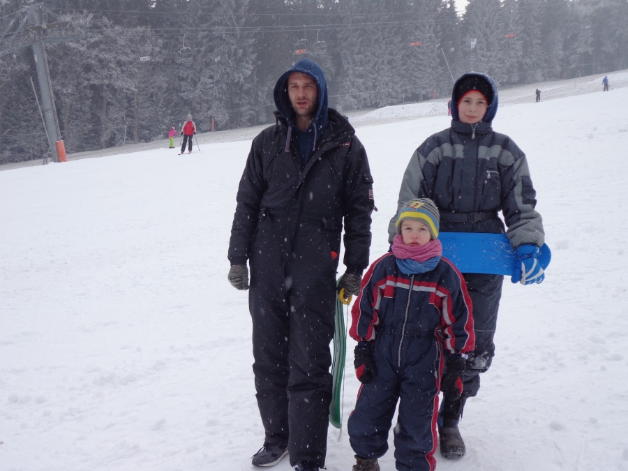 Ski Areál Zadov:Tatínek rád řídí,maminka fotí, Pavlík to je velký kluk, Lukášek si cestou schrup!