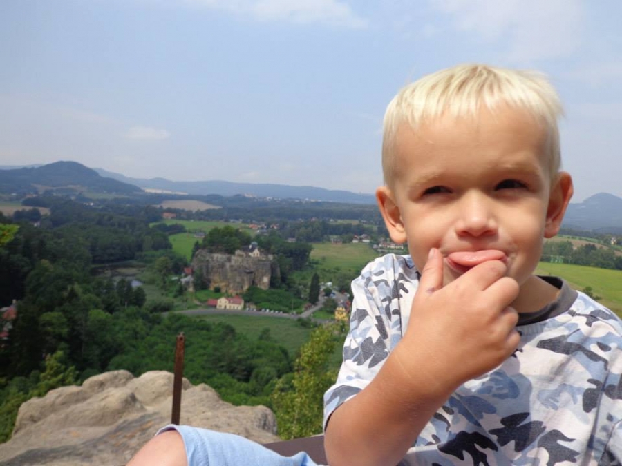 Lesní divadlo a rozhledna Na Stráži:Tatínek rád řídí,maminka fotí, Pavlík to je velký kluk, Lukášek si cestou schrup!