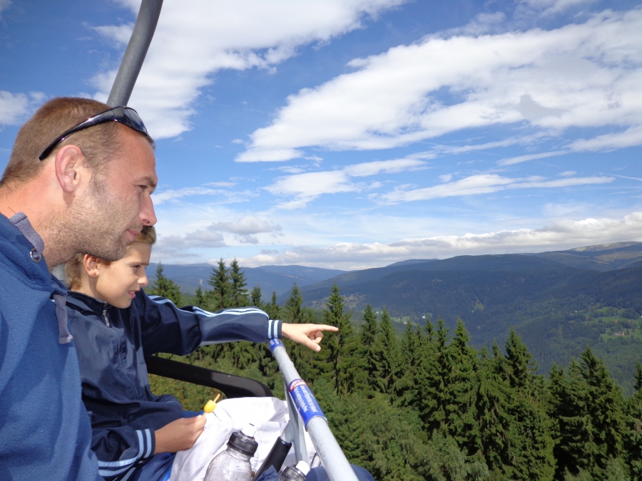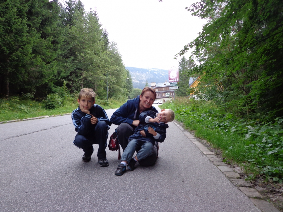 Špindlerův Mlýn:Tatínek rád řídí,maminka fotí, Pavlík to je velký kluk, Lukášek si cestou schrup!