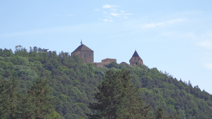 Na sousedící Žebrák je prudké stoupání po kamenech. Sice jsme Žebrák nestihli otevřený, ale i tak to byl vydařený výlet :-)