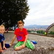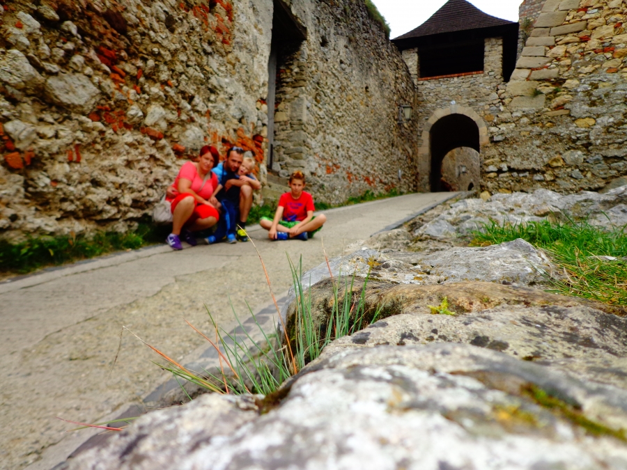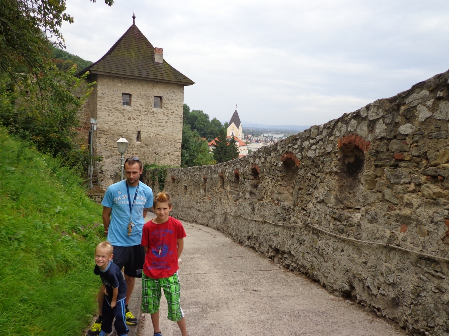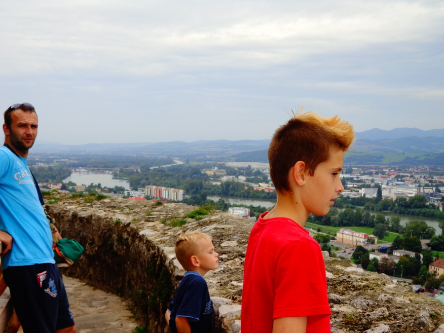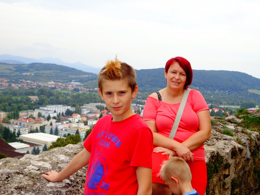 Trenčínský hrad:Tatínek rád řídí,maminka fotí, Pavlík to je velký kluk, Lukášek si cestou schrup!