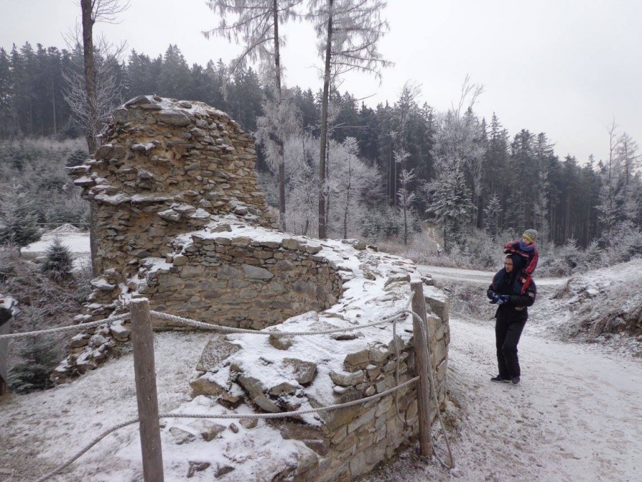 Hrad Kašperk:Tatínek rád řídí,maminka fotí, Pavlík to je velký kluk, Lukášek si cestou schrup!